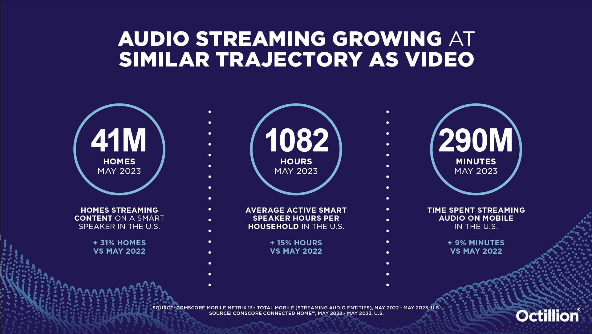 - Streaming Audio: With over 41M U.S. homes now listening to audio on digital devices, platforms like Spotify become indispensable. Allocate an initial 5-10% of your ad budget here, then optimize based on listener engagement metrics. Like CTV and OTT, you can have an above the line and below the line approach to impact both performance and brand impact equally.