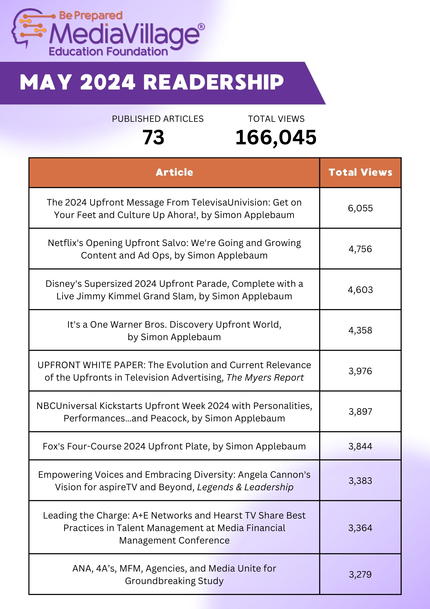 From Disney and Warner Bros. Discovery to NBCUniversal and Netflix, Upfront season was in full swing and Simon Applebaum was on the scene at these presentations across New York City to give you the full scoop on these networks’ growth, goals and future offerings. Applebaum’s coverage of Spanish-language network TelevisaUnivision was this May’s most-viewed story, highlighting this year’s message of ‘Culture Up Ahora!’. This month’s most-watched video was another edition of Legends & Leadership with aspireTV’s Angela Cannon, who spoke on the growing brands’ mission to amplify diverse voices and spearhead representation for underrepresented communities.