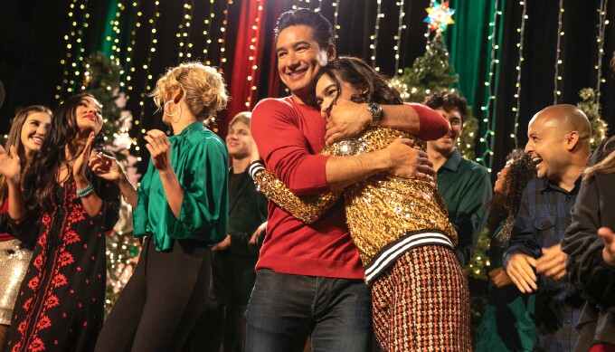 As far as making Christmas movies goes, even with the pandemic 2020 was an unusually busy year for Hart. First, she directed Feliz NaviDad, starring her friend Mario Lopez (pictured above, center) and Annalynne McCord. Due to the pandemic production shutdown, she was concerned it might never happen. "We were trying to get this movie going during the winter, and actually shoot when there's snow and it's cold and Mario wouldn't complain about wearing a coat," she explained. "March 15 was our start date, and we shut down March 13.