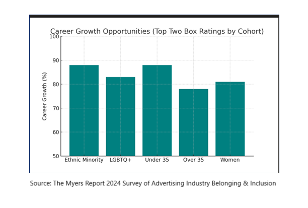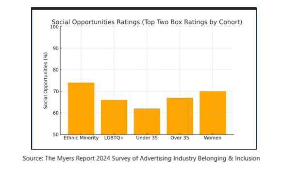 The 2024 Myers Report Survey on Advertising Industry Inclusion & Belonging reveals a largely positive outlook for the advertising industry. Career growth opportunities have improved substantially, and social integration is on the rise across various cohorts. However, as a “canary in the coalmine,” this survey highlights persistent areas that require improvement, particularly in creating more external social opportunities for younger and LGBTQ+ professionals.