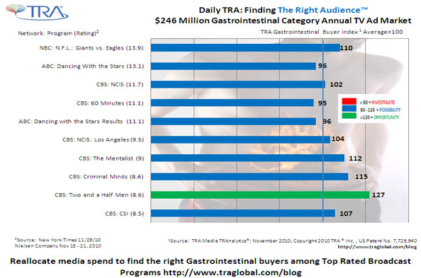 We know change brings challenges as well as new and exciting possibilities. So why not embrace it and learn to use it to your advantage? With TRA’s patented Media TRAnalytics® for planning media campaigns, change is already on its way and for the better. Learning what programs are best for advertising specific products, advertisers are now able to reach The Right Audience™ at the right time for their individual products. For example, advertisers of Bottled Water might consider advertising on overachieving programs such as WWE Raw because it indexed highest for actual Bottled Water purchasers. Conversely, buying advertising on a program that underachieved would lead to dollars being wasted. By reallocating dollars between programs, advertisers will be able to reach their maximum audience, streamline their expenses and drastically increase their return on investment. Of course, programs come and go on a regular basis and we know that what’s good today may not be good tomorrow so it is imperative to keep on top of your media plan and spending with Media TRAnalytics®.