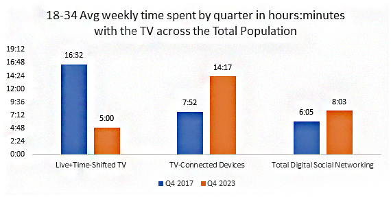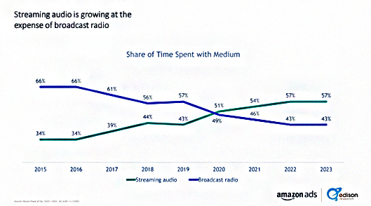 The same Edison report comments that for 18-34, who spend nearly three hours a day with streaming audio/broadcast radio, had increased +18% in their streaming audio usage 2020 to 2023.