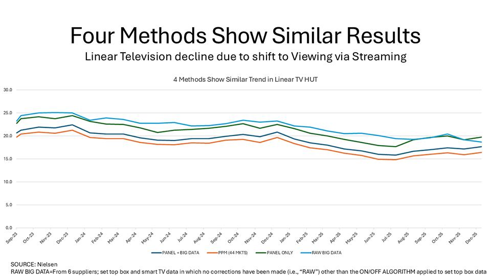 For some reason, people have been looking at linear audience trends and have announced that the sky is falling. They don’t have to leave out streaming; Nielsen measures streaming with its streaming meter and integrations with about 20 major platforms, such as Amazon, and with more platforms integrating with Nielsen all the time.