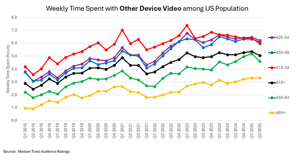 None of the viewing in the last chart above is included the previous charts. You can see that with the growth of viewing on non-TV set devices, the overall viewing of television is quite healthy!