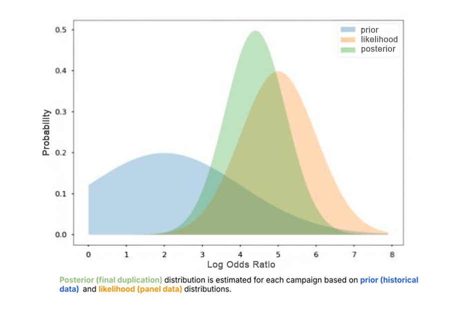- The Bayesian Advantage: Instead of relying on just one source, Bayesian inference intelligently weighs and combines both the campaign-specific panel data (likelihood) and the historical modeled data (prior). The result is a "posterior" distribution – a final, more accurate and stable estimate of duplication.
