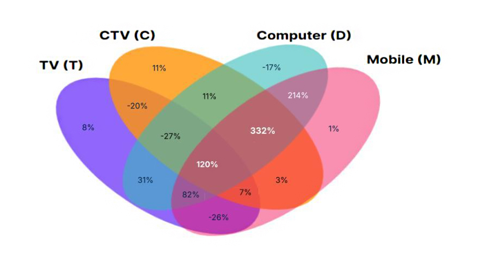 - Direct Observation of Duplication: By combining metered TV data with matched digital impressions (either through streaming meter data or panelist matches for certain walled gardens), the panel directly captures respondent-level ad exposures across platforms. This provides an unbiased, empirical source of truth for how actual audience duplication occurs for individual campaigns, with data processed daily.