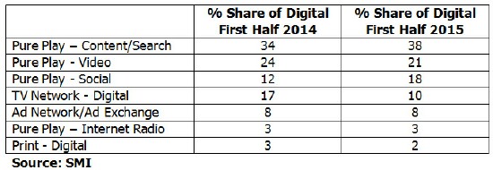 Television’s dominance in the motion picture category is shown more clearly by the following chart. Note that digital grew while the total spend declined, resulting in the share growth shown below.