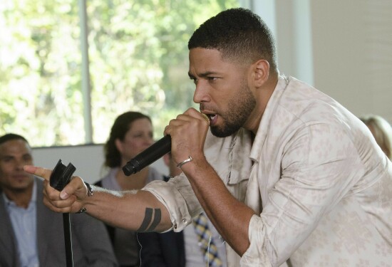 Near the beginning of this week’s episode we saw a meeting in the Empire Entertainment boardroom between label chief Lucious Lyon (Terrence Howard), his talented son Jamal (Jussie Smollett, pictured at top), various Empire executives and representatives from Pepsi.