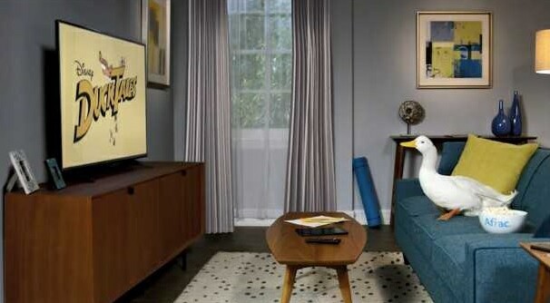 Moss: You’re not running an Aflac spot within DuckTales so much as you're the sponsor of it -- and then he is incorporated into the animation. To describe it, it’s the actual duck sitting and watching DuckTales... and then in his little mind's eye he is transported into an animated character among them and hangs out with Huey, Dewey and Louie.