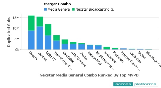 Since Nexstar reaches into smaller markets we see DirecTV as the largest MVPD in a Nexstar – Media General combination.
