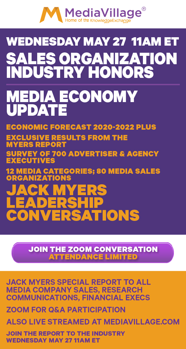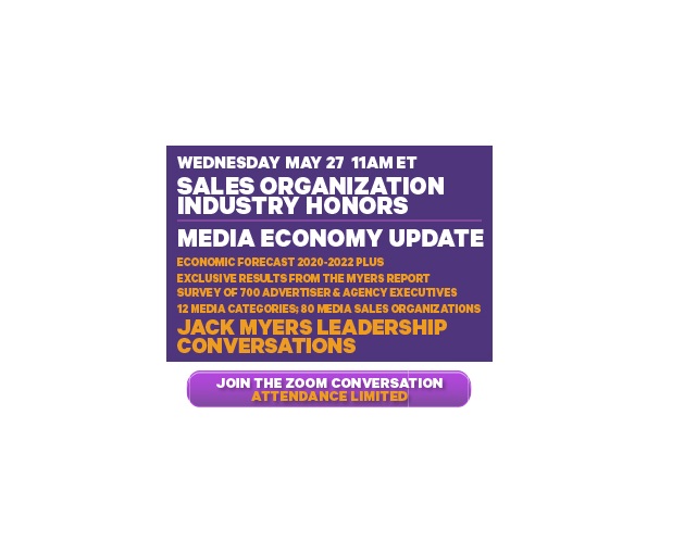 Jack Myers Special Report to all media company sales, research communications, and financial executives. Economic Forecast 2020-2020 plus exclusive results from The Myers Report survey of 700 advertising & agency executives - 12 media categories - 80 media sales organizations. Register Now
