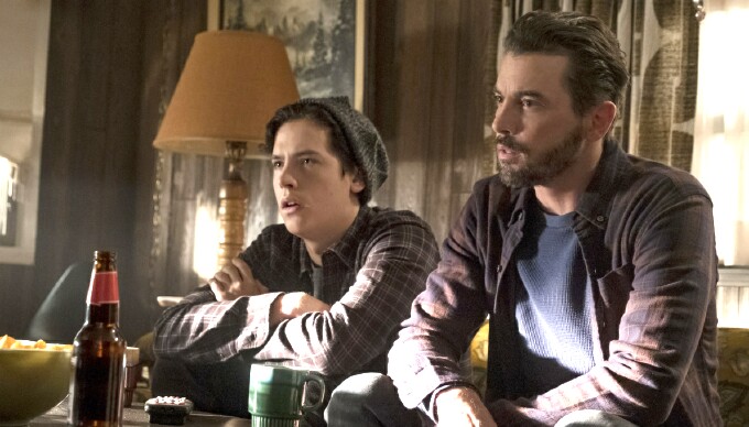 No spoilers, but we can reveal things do take a major turn storyline wise in tonight’s episode for both Archie (K.J. Apa, pictured at top and interviewed here) and Betty (Lili Reinhart), whose dark path continues to spiral. Likewise for Jughead (Cole Sprouse) and his father FP Jones (Skeet Ulrich, pictured below right with Sprouse) -- let's just say some holes are deeply dug (wink, wink). The plot also thickens for the entire Lodge family as one family member makes a bold move.