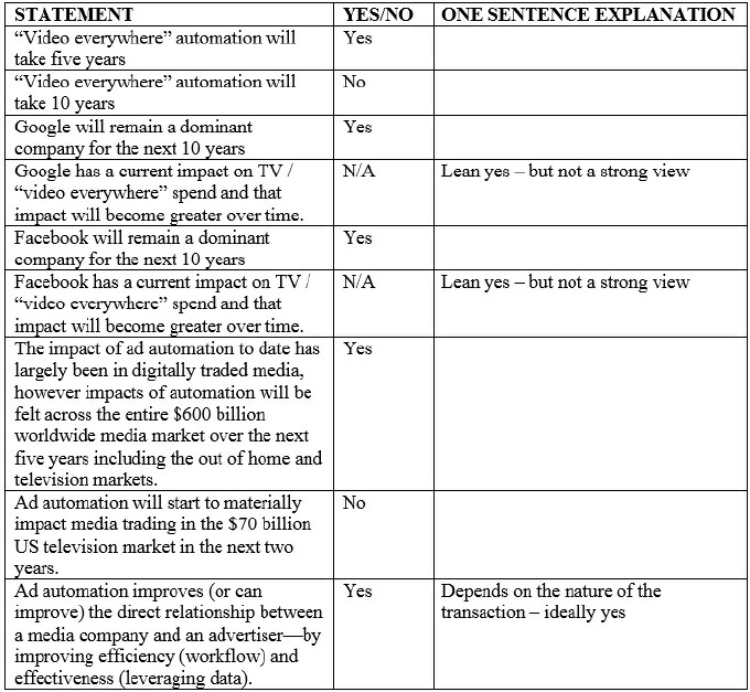 SEARS: With regards to advertising automation impacting “video everywhere,” what are the three most overblown topics that you wish would just go away?