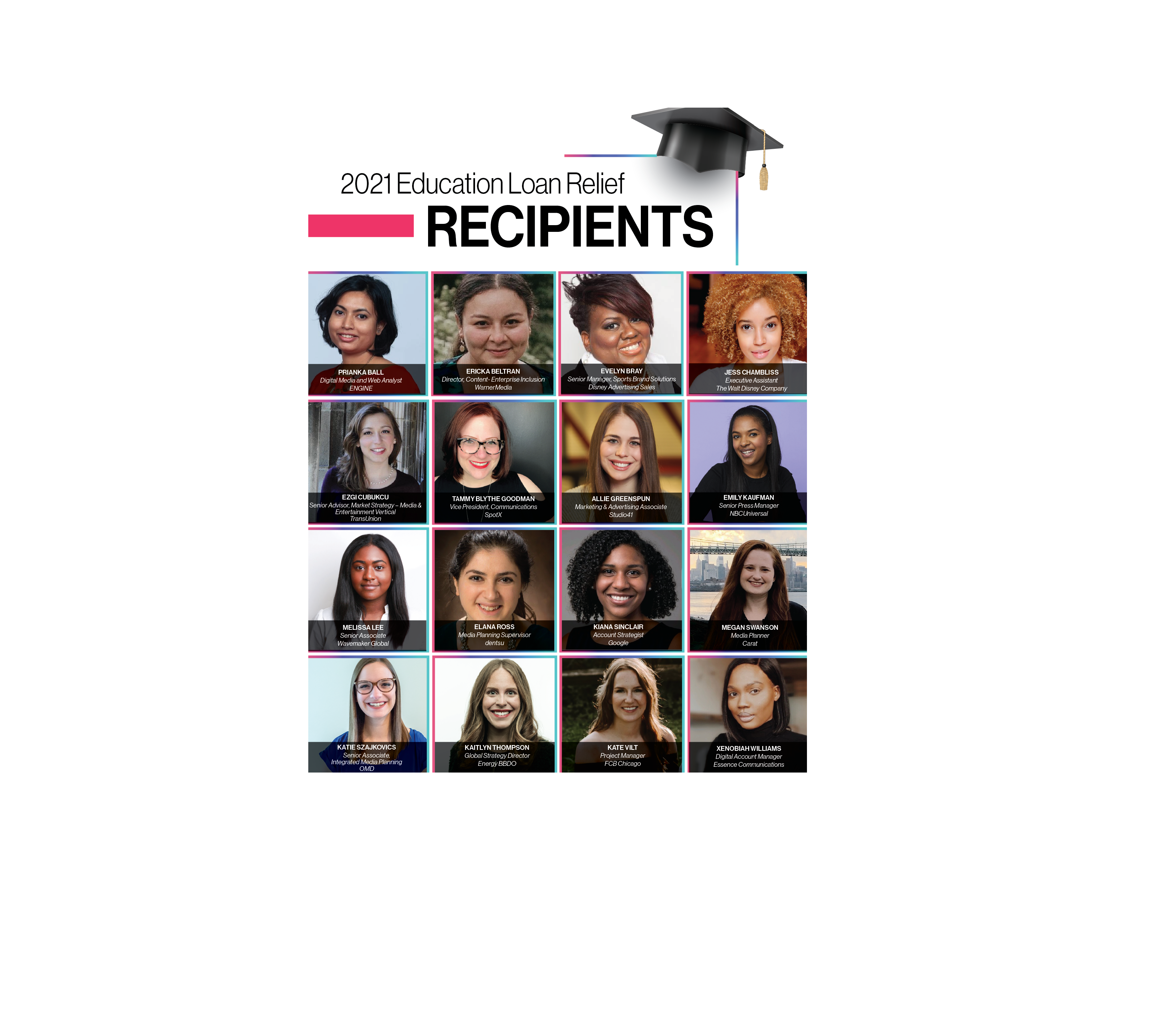 "I'm so thankful to work in an industry and for a company that strives to support and champion women, regardless of their background. From the mentors who wrote recommendation letters to my friends who helped me edit the essay content -- I'm so grateful for a network of strong women (and men) lifting up other women!" Elana Ross, Media Planning Supervisor, dentsu.
