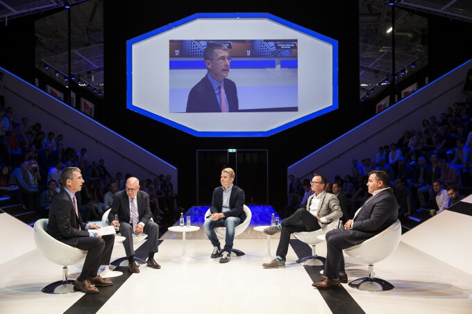 (TV and ad automation was discussed at the Dmexco conference in Cologne, Germany in front of an audience of nearly one thousand people. Pictured left to right: Jay Sears; Michael Kahn, CEO of Performics and Global Performance Practice Lead -- Publicis Media; Rhys Nölke, Senior Vice President Strategy of RTL Group; Jamie West, and Michael Strober, Executive Vice President, Client Strategy and Ad Innovation and Co-Head of Turner Ignite at Turner Broadcasting. Follow the links above to read Jay's interviews with them.)