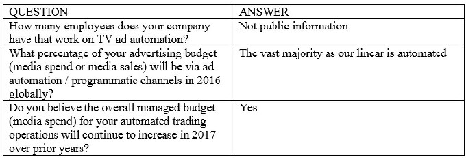 SEARS: With regards to advertising automation impacting TV, what are the biggest trends you expect to impact companies in 2016 and 2017?
