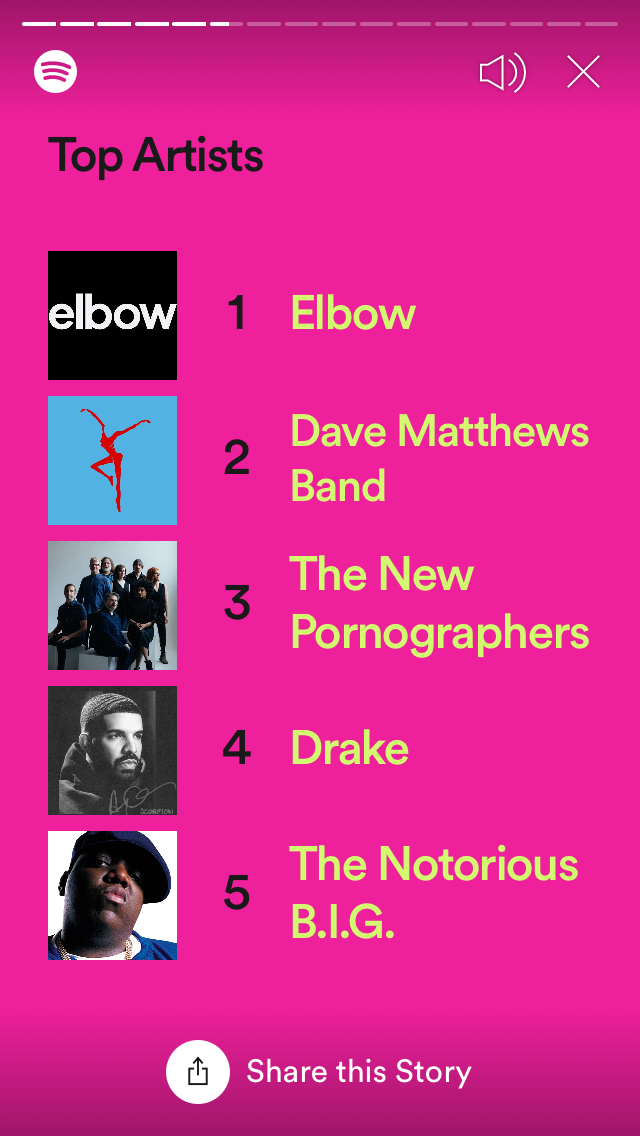 Viewing Your Decade Wrapped on a What/Why axis, it clearly over indexes on the "What" portion of the axis. It tells us what musical choices we indulged in and to what extent we listened to music as a whole. Spotify is much less effective on the other side of that axis — the all-elusive "Why."