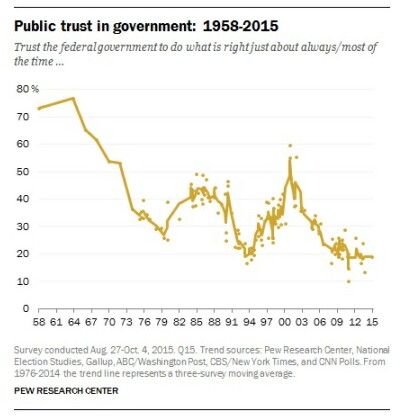 Trust in other things has also been going down over the same time period. A 2015 4A's study found that 96% of consumers distrust advertising. That same year (2015) Nielsen in a global study found that 83% of consumers still trusted each other for product recommendations in the form of earned positive mentions by consumers online. Sixty-six percent trusted the brand's own site. Fifty-six percent trusted emailed articles they signed up for.