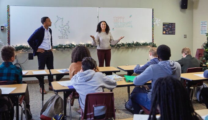 Where it goes is five years back in the past, allowing Cheryl to re-evaluate the choices she made then, and by not making them, giving her the option to possibly change her future. She also gets to spend quality time with her beloved science teacher Ms. Nelson (Sheryl Lee Ralph, above left with Mowry-Housley), to whom she never properly expressed her gratitude for inspiring her to become an astrophysicist. She also revisits a relationship with her high-school rival George (Michael Xavier).