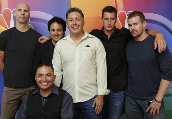 The character Josh Kelly plays this Thursday on NBC’s The Night Shift -- a United States senator and war veteran who is injured after violence erupts during a protest at a funeral service honoring a gay soldier -- couldn’t be more different from that of combustible cameraman Jeremy Caner, his role on the Lifetime drama UnREAL. It is, however, one that is very close to Kelly, an army veteran who served in Afghanistan and Iraq before he began acting. But that's not the only reason Kelly came to TCA to talk about this particular show: The episode was written and directed by and features in guest roles veterans from many branches of the United States Armed Forces. This is an important piece of television, as it sends a heartfelt message of thanks to all veterans for their service while also calling attention to issues involving PTSD and the medical bureaucracy many returned service men and women have to deal with. (Pictured at top, left to right, are series creators and executive producers Jeff Judah and Gabe Sachs; episode writer and Army veteran Brian Anthony; series star Brendan Fehr and Josh Kelly. Front: military advisor and Army veteran Toby Montoya.)