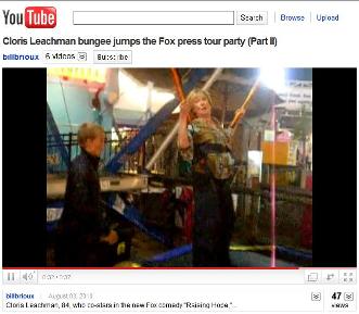 Fox topped it all off that night with the biggest TCA party of all at the Santa Monica Pier amusement park. The network had an excellent turnout of stars from its shows (and from many of the shows on sister cable network FX). Interestingly, many of the network's young stars left early (some mumbling that the night air off the Pacific was too cold for them), but 84-year-old Cloris Leachman (from Raising Hope) stayed until the very end (well after 10 p.m.). After twenty years of TCA tours I thought I had seen everything, until Leachman strapped herself into a bungee contraption and began bouncing off a trampoline and taking flight. And after that she attempted to scale a rock wall!