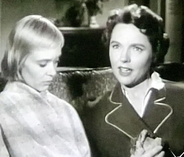 Now of course Margaret would never think of doing such a thing. She just saw fit to administer a little justifiable discipline in response to thoughtless behavior from Jim and the kids. But she was so firm that she inadvertently spooked a young pregnant woman named Esther Garvin who had stopped by the Anderson home with her husband Walt to purchase a used crib. (Side note: Esther was played by Christine White, pictured at top left, who would later co-star opposite William Shatner in one of the most famous Twilight Zone episodes in the history of that show, Nightmare at 20,000 Feet.)