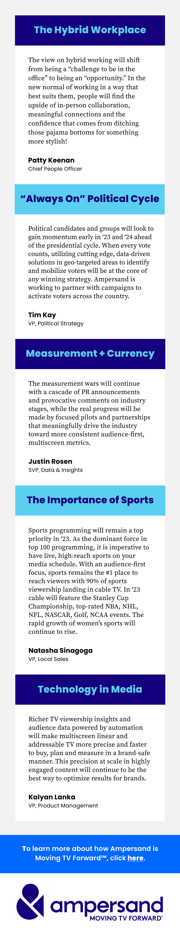 With our industry rapidly changing, Ampersand tapped a handful of its top subject matter experts to weigh in on key topics we will be facing in 2023.