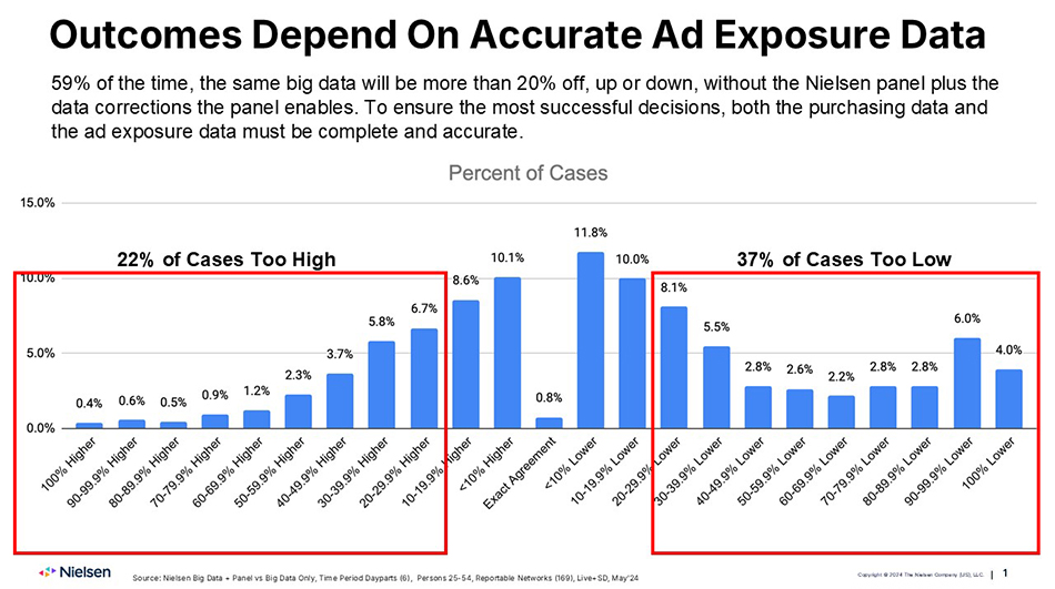 At TRA we were quite proud of the 3.4 million household sample we had, and of using two ID graphs for greater accuracy of matching impressions and purchases. How far has the industry progressed beyond our pioneer work? Nielsen now has its 45,000 home panel plus 75,000,000 devices plus 135,000,000 people in its national respondent-level database. It now has in the U.S. full census deterministic advanced audiences covering CPG purchasers for over 100,000,000 individual people, 100% coverage of auto registration data, 80% of credit card transactions, and uses nearly ten of the best ID graphs together. The measurement industry has come so very far in ten short years.