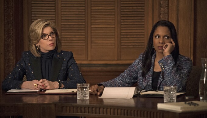 Both series are set in Chicago, so in Fight Diane frequently encounters characters (colleagues, clients, lawyers, etc.) from Wife, adding to the feeling that the sum total of her ten-seasons-and-counting story is a new kind of filmed novelization about a very modern middle-aged woman who doesn’t take any crap from anybody. (I may be wrong, but I think Baranski is one of the four women working today who have continuously played the same role in broadcast drama for the longest period of time. Ahead of her are Mariska Hargitay of Law & Order: SVU and Ellen Pompeo and Chandra Wilson of Grey’s Anatomy, though Baranski is the only one to have entered this pantheon by way of two series crossing two mediums, broadcast and streaming.)