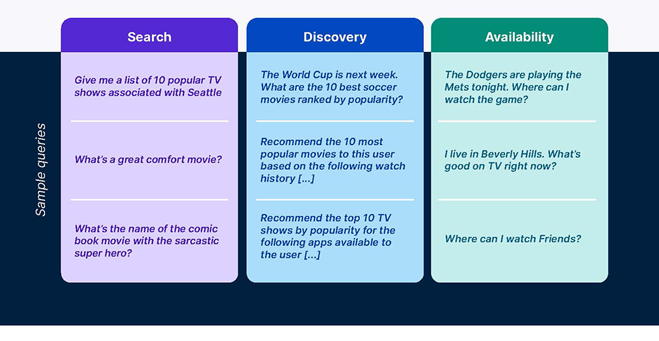In order to help the industry deal with these challenges, Gracenote has invested in Model Context Protocol (MCP) database servers, built to ground AIs seeking hard data with which to respond to user prompts, so that the AIs deliver accurate guidance to viewers, saving them perhaps the majority of time they now spend deciding what to view next. Gracenote provides these examples of easy ways viewers can use AI to greatly shorten the amount of time they spend deciding what to watch, so they can spend more time watching what they want to watch.