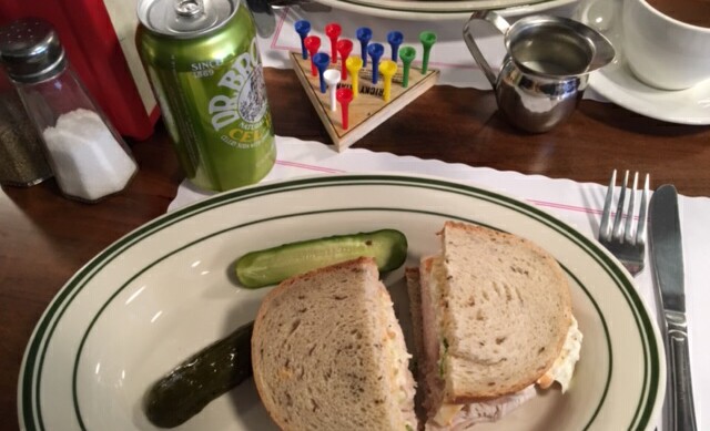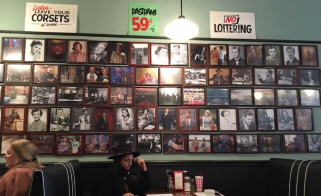 The venue has a 1950s jukebox, photo booth, photographs, telephone, signage and even an old-timey cash register. The menu alone is a nostalgic treat, beginning with the 1958 prices -- 99 cents for the sandwiches, 75 cents for the mini knish, 50 cents for either the black and white cookie or the cheesecake and 50 cents for the pickles and the beverages. I enjoyed “The Susie Sandwich” (turkey and coleslaw on rye) with a Cel-ray soda while my husband sampled “The Maisel” sandwich (pastrami, salami, coleslaw and secret sauce).