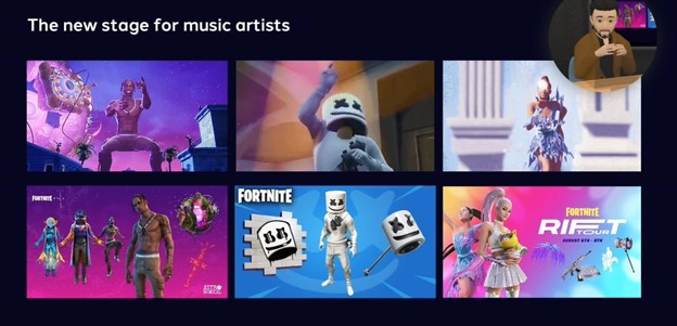 Ariana Grande did a recent concert with Fortnite, where fans could immerse themselves into digital assets from skins, emotes and piggy smallz back bling and showcase their digital goods on Fortnite characters while enjoying the concert.