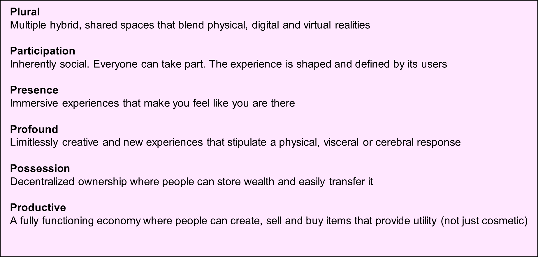 May and Holland offered highlights of what they call the "7 Ps of the Metaverse":