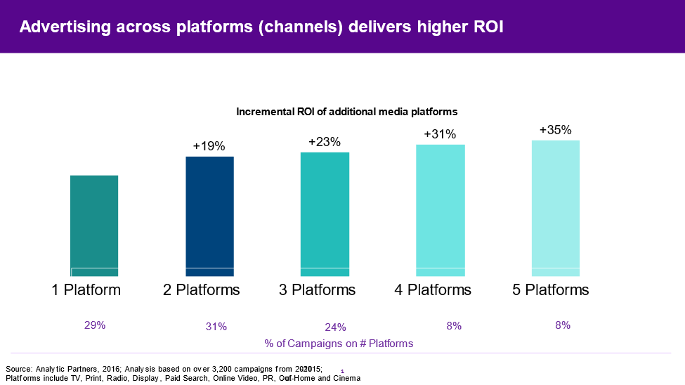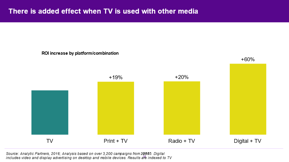 What are the practical implications? Brands and their agencies ought to immediately consider adding more media types, with measurements set up to detect the incremental results. That includes for example radio, outdoor and print.
