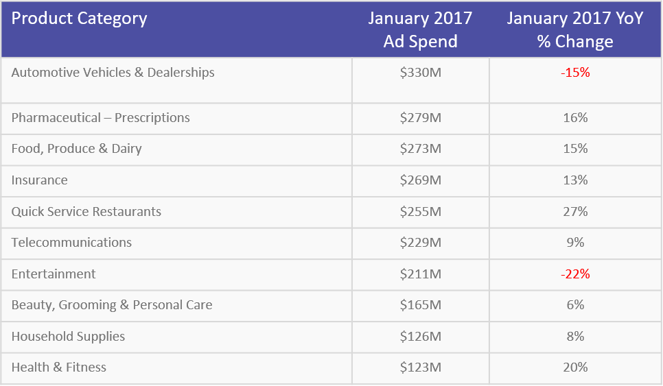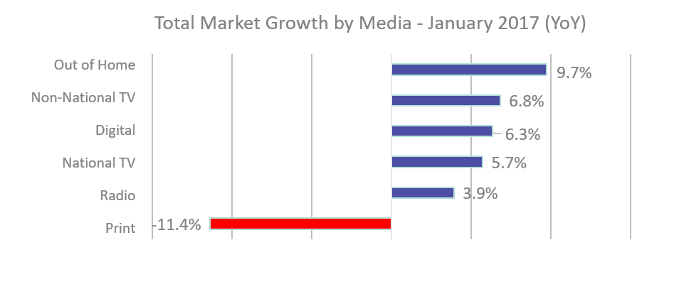 Our January 2017 findings include a growth rate of +5% year-over-year in U.S. media spend. This uptick is significant as it occurred in a historically slow month during a non-election, non-Olympic year marked by economic and political uncertainty.