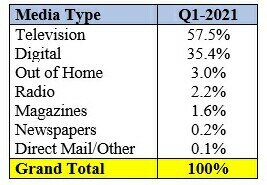 Very much countering the trend of national advertisers as regards spot television, of late they have been increasing their use of spot: +26% in the first quarter of 2021, for example, and the spot TV percentage has been increasing since 2017.