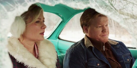 The just-concluded second season was a prequel set in 1979 that revealed the nightmare Solverson was speaking of, back when his wife was diagnosed with cancer and Molly was just a little girl. It involved a turf war between a local crime family and a larger mob from Kansas City and a painfully ordinary local couple (played to award-worthy perfection by Kirsten Dunst and Jesse Plemons, pictured above and below) that gets caught up in the middle of it; the ultimately failed efforts of police officers Lou Solverson (Patrick Wilson, pictured at top, utterly convincing as a younger version of the Carradine character from season one) and his father in law, Sheriff Hank Larsson (Ted Danson), to prevent a massacre; a maniacal killer who wreaks havoc everywhere he goes; a visit from Ronald Reagan on the campaign trail, and a UFO.