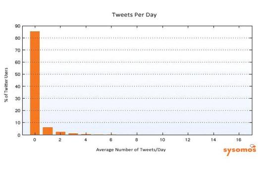 In a study of Twitter users, Sysomos finds that 75% of all Twitter activity comes from about 5% of users. In other words, while there is a core of avid users who contribute frequently, most users post very infrequently.