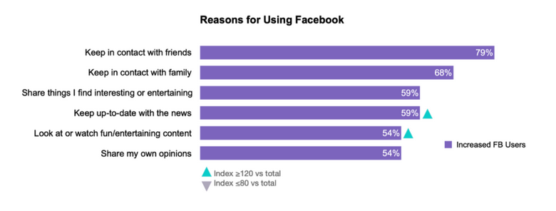 Increased Facebook users check Facebook multiple times every day (67% vs 49% among general users). In addition to staying connected with friends and family -- the top reason for everyone for using Facebook -- we see that Facebook is also a more important source of news and entertainment for them compared to general users.