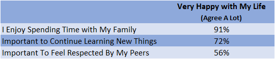 Three main attitudes about our lives unearth much about what makes people happy and rise to the top of over 200+ psychographic statements:
