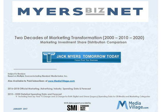Scroll down to download Jack Myers TomorrowToday Two Decades of Marketing Transformation (2000-2010-2020) Marketing Investment Share Distribution Comparison