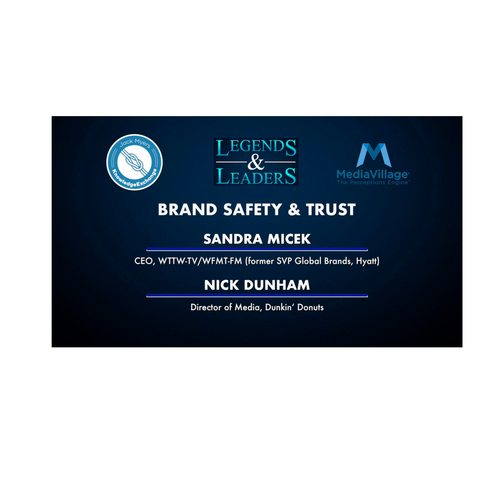 Jack Myers launched Season Two of the Legends & Leaders Video Series with Sandra Micek, CEO, WTTW-TV/WFMT-FM (former SVP Global Brands, Hyatt) and Nick Dunham, Director of Media, Dunkin’ Donuts, to discuss the future of the Upfronts, the transformation of the media, marketing and advertising industries and its impact on brands. Click here to see the interview. Watch the full series here.
