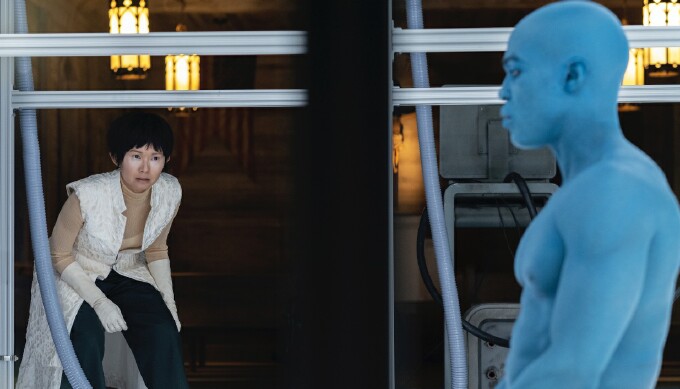 Speaking of pivotal episodes, the achievable level of awesomeness for this series did become pretty clear after that, but they still had one huge card to play before the big finale: Dr. Manhattan. Or so I thought. The big blue man wasn’t the only huge reveal when the clock finally struck midnight. The truth about the mysterious and uber-rich Lady Trieu (played by the magnificent Hong Chau, pictured below left) ended up being the biggest bomb dropped before the end, and while (spoiler alert) her plans never fully came to fruition, her character and storyline were among the most fascinating elements of a series already filled with a million potential points of interest.