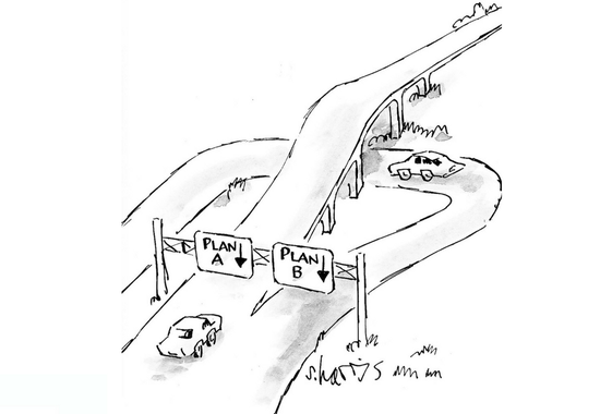 We're all familiar with "Plan B." It emerges out of the haze when Plan A has self-destructed for one of a thousand reasons. An unexpected snowstorm cancels our flight. We'll have to scrub a key meeting. Too bad. On to Plan B. If there is no Plan B, we'll have to improvise. We're usually unhappy with Plan B. It's a necessity, born of circumstance. We shrug our shoulders, wistful and disappointed. Oh, well. Plan A was so much better! But … it isn't happening.
