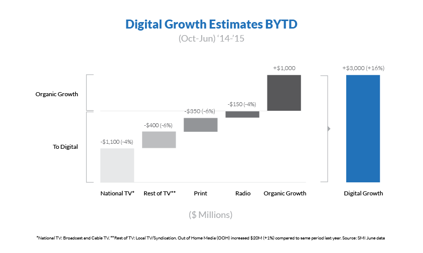 With the research results in, our report showed that organic growth for digital totaled $1 billion and affirmed that it was siphoning share away from other media, with the bulk of it coming from television.