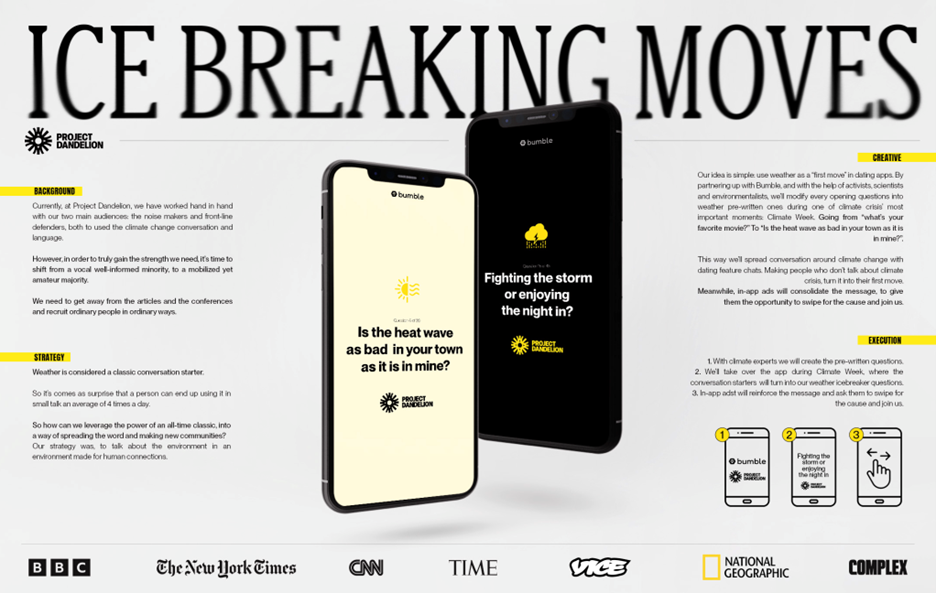 This entry was praised for its focus on education and long-term impact. By targeting children, the campaign aimed to instill a sense of responsibility and awareness from a young age, ensuring that the next generation is better equipped to handle the challenges of climate change. The engaging format of a game made learning fun and accessible, significantly enhancing its potential reach and effectiveness.