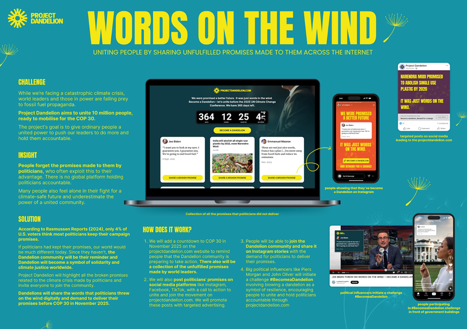 At this year's Cannes Lions International Festival of Creativity, Project Dandelion made waves in the Young Lions Competition, showcasing the ingenuity of the next generation of creative talent. With 448 competitors from 69 countries, the competition was a true testament to creativity and innovation in tackling one of the most pressing issues of our time: climate change.